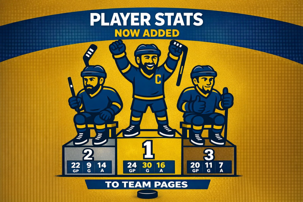 Player stats have now been added to the team pages and are sortable by name, goals, assists, penalties and total points.